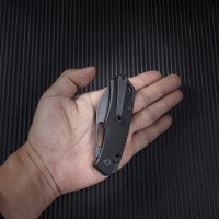 Клинок длиной 73 мм выполнен из стали 140CR с твёрдостью 61–63 HRC, благодаря ламинированию двумя слоями других нержавеющих сталей, лезвие обладает характеристиками, сравнимыми со сталью S35VN. Форма клинка — Wharncliffe — подходит для точных резов и контролируемых работ в любых условиях. Черное финишное покрытие PVD придаёт клинку тактический внешний вид и повышает его стойкость к коррозии и износу.