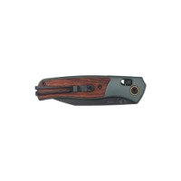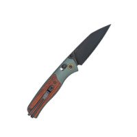 Рукоять выполнена из алюминия 6063 с зелёным анодированием и вставками из розового дерева. Нож с рукоятью из розового дерева удобно лежит в руке благодаря эргономичной форме и глубокой карманной клипсе, которую можно переставить под левую или правую руку.