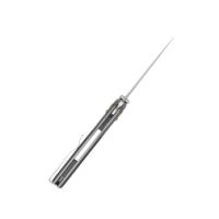 Клинок длиной 81 мм выполнен из нержавеющей стали Sandvik 14C28N с твёрдостью 57–59 HRC, что обеспечивает оптимальное удержание кромки и стойкость к коррозии. Форма клинка — обратный танто (Wharncliffe) — подходит для точных резов. Толщина обуха 2,6 мм сохраняет прочность, а сатинированный финиш клинка снижает отражающую бликовую способность и повышает стойкость ножа к коррозии и износу.