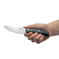 Эргономичная рукоять ножа обеспечивает удобный захват, который позволяет работать в течение продолжительного времени. Рукоять туристического ножа выполнена из стеклотекстолита G10. Это многослойный композитный материал, основу которого составляет стекловолокно и эпоксидные смолы. G10 обладает отличными характеристиками — он легкий, прочный, ударопрочный, стойкий к износу и механическим повреждениям. Материал не боится влаги, не изменяет своих свойств при перепадах температуры, не впитывает запахи и не скользит в руке. 3D-обработка рукоятки обеспечивает рельефную поверхность, которая создает дополнительную защиту от скольжения во время работы.