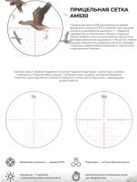 Технические характеристики Размер объектива 56мм Увеличение 5x - 30x Удаление выходного зрачка 95мм Размер трубки 34мм Поле зрения (м/100м) 8.2 x 1.4 Угол зрения 4.7 x 0.8 Цена клика 0.1 MRAD Прицельная сетка AM530 Выходной зрачок 8 - 1.8мм Диоптрийная коррекция -3 / +7 Класс защиты IP68 Материал корпуса Авиационный алюминий Подсветка сетки 11 уровней Регулировка параллакса От 15м до бесконечности Регулировки по вертикали 26 MRAD Регулировки по горизонтали 14.5 MRAD Светопропускная способность 93% Тип резьбы M57.5x0.75 Фокальная плоскость Первая Габариты 392x45.8x64 мм Масса 810гр Гарантия производителя 10 лет