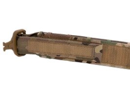 Лёгкий стрелковый пояс с MOLLE интерфейсом, состоящий из двух частей. Предназначен для размещения кобуры, подсумков и прочего снаряжения. Оснащён магнитами в поясничном отделе для точного и быстрого позиционирования при надевании. Малозаметен под верхней одеждой. Не теряет форму при большой нагрузке благодаря вшитой полимерной вставке.