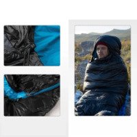 В качестве наполнителя для теплого спальника используется высококачественный утиный пух с коэффициентом наполнения 650FP. Он обеспечивает отличное сохранение температуры и высокую степень сжимаемости, благодаря чему спальник можно компактно свернуть для хранения. Также натуральный наполнитель обладает меньшим весом, что имеет большое значение в длительном походе.