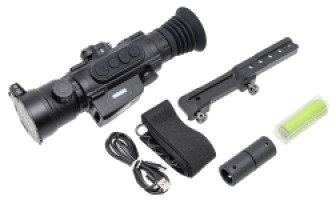 Сенсор с разрешением 640x512 пикселей и объектив 50 мм выводят чёткую картинку в любое время суток на OLED дисплей с разрешением 1024x768. Аккумулятор 18650 ёмкостью 3500 мАч обеспечивает до 5 часов автономной работы.